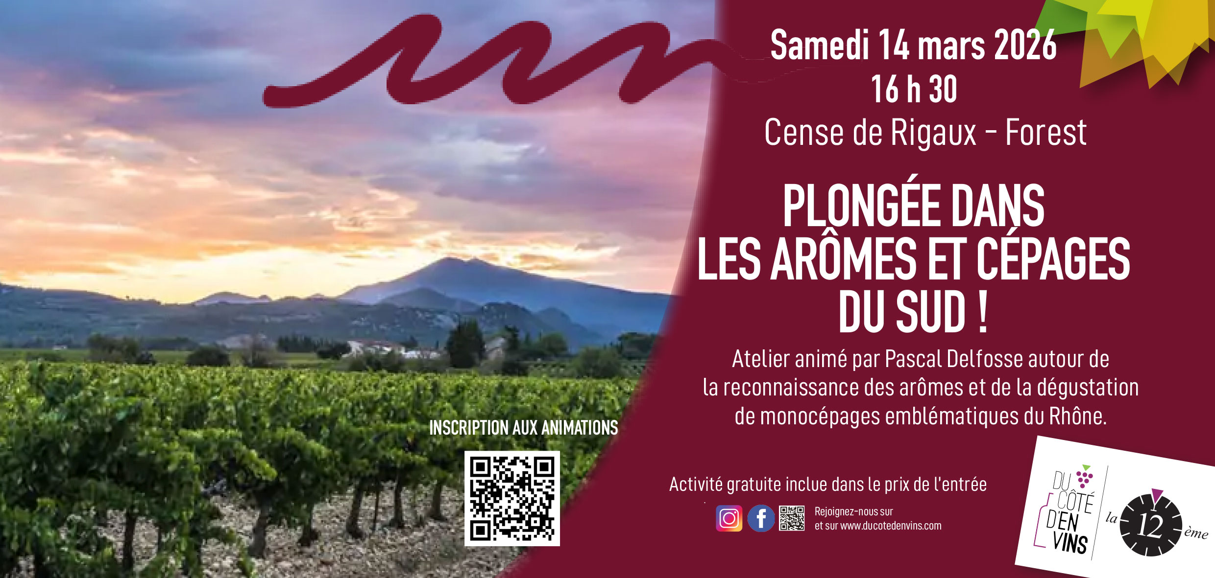 16 h 30 : Plongée dans les arômes et cépages du Sud ! Atelier animé par Pascal Delfosse autour de la reconnaissance des arômes et de la dégustation de monocépages emblématiques du Rhône.