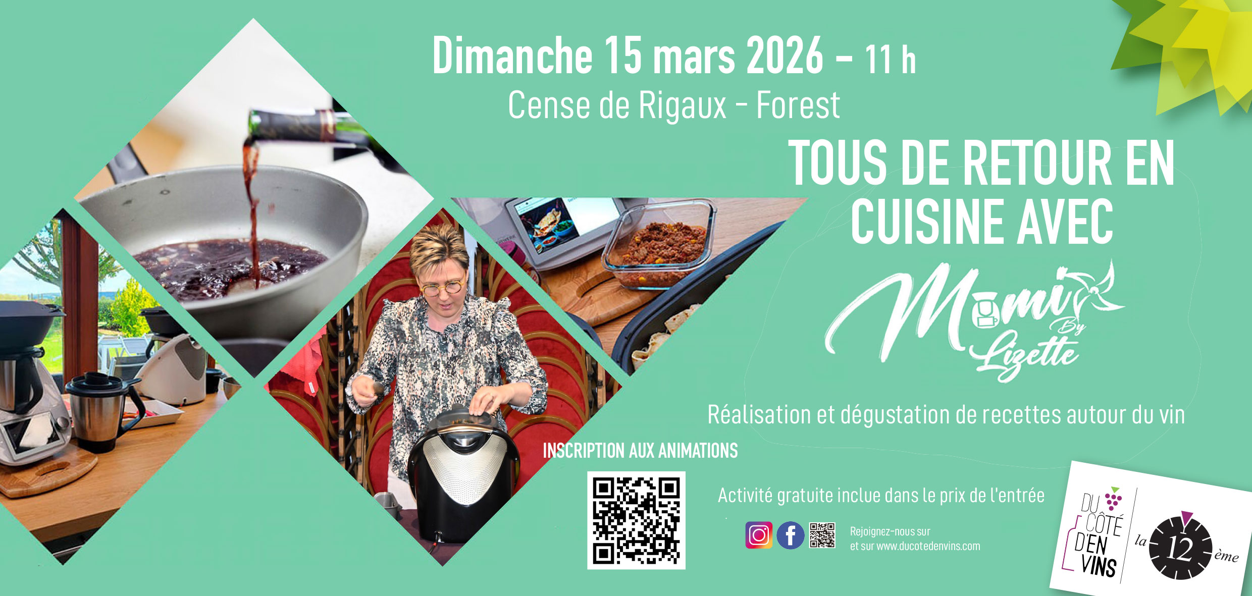 11 h 00 : Tous de retour en cuisine avec « Momix by Lizette » ! Réalisation et dégustation de recettes autour du vin.